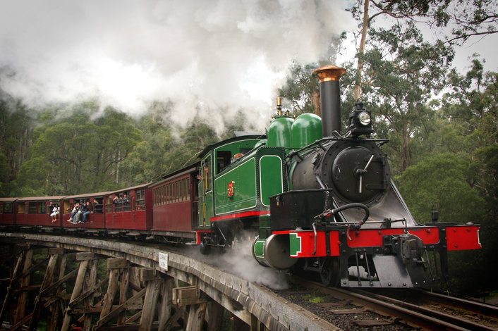 First, travel to the foothills of the Dandenong Ranges where you’ll step back in time with a memorable journey on the historic Puffing Billy Steam Train. Maintained in mint condition by dedicated volunteers, the century-old steam train still runs on its own mountain track between Belgrave and Gembrook, through the heart of the delightful Sherbrooke Forest.